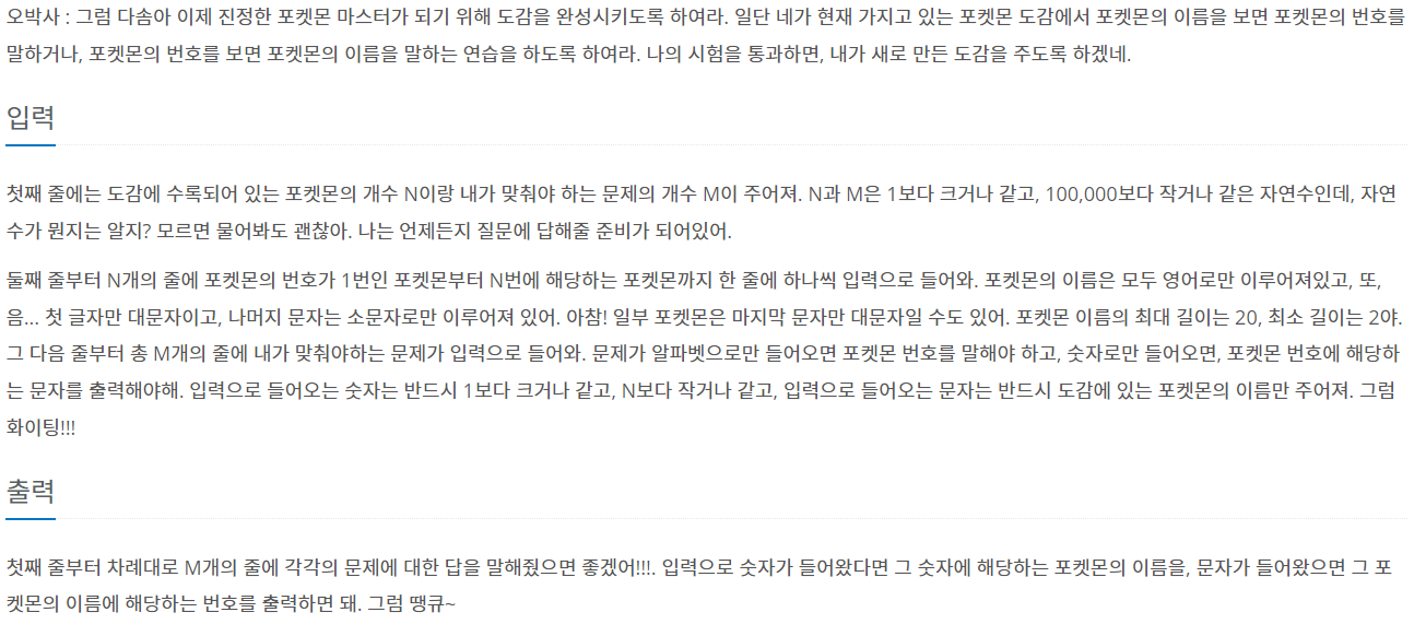 //입력 받을 포켓몬 개수 n, 맞춰야할 문제 개수 m