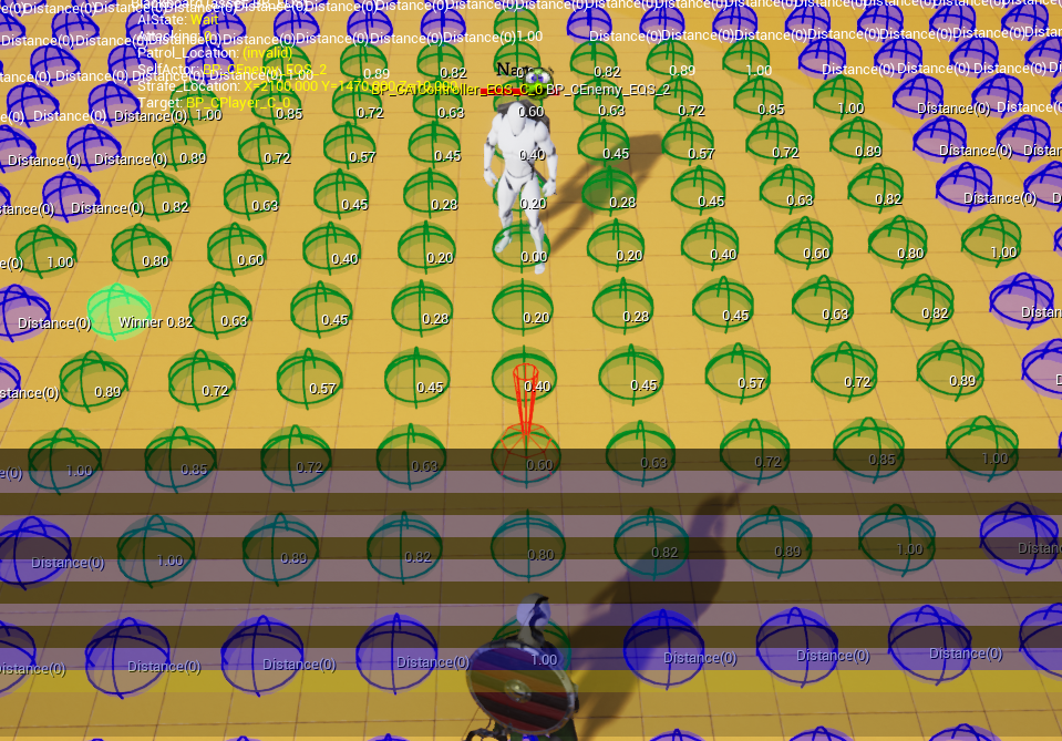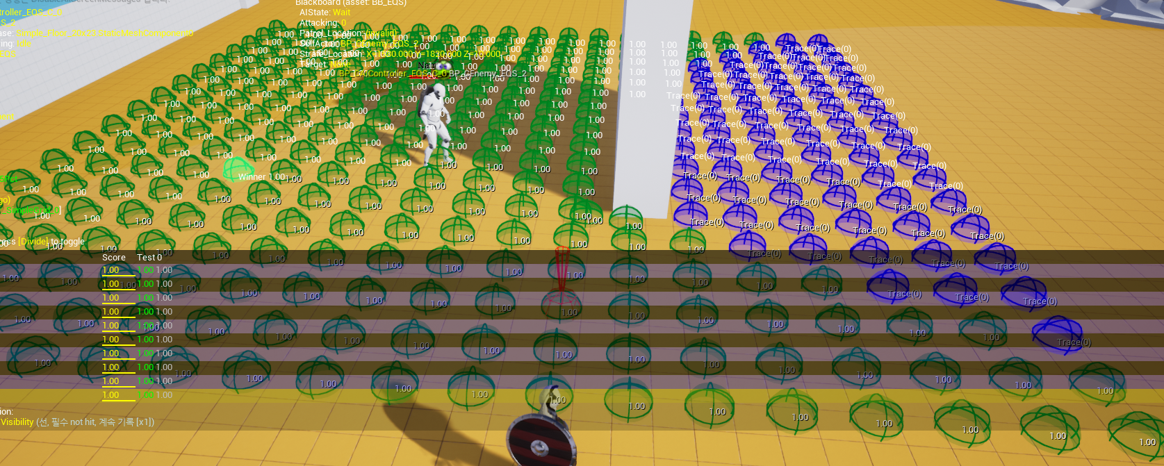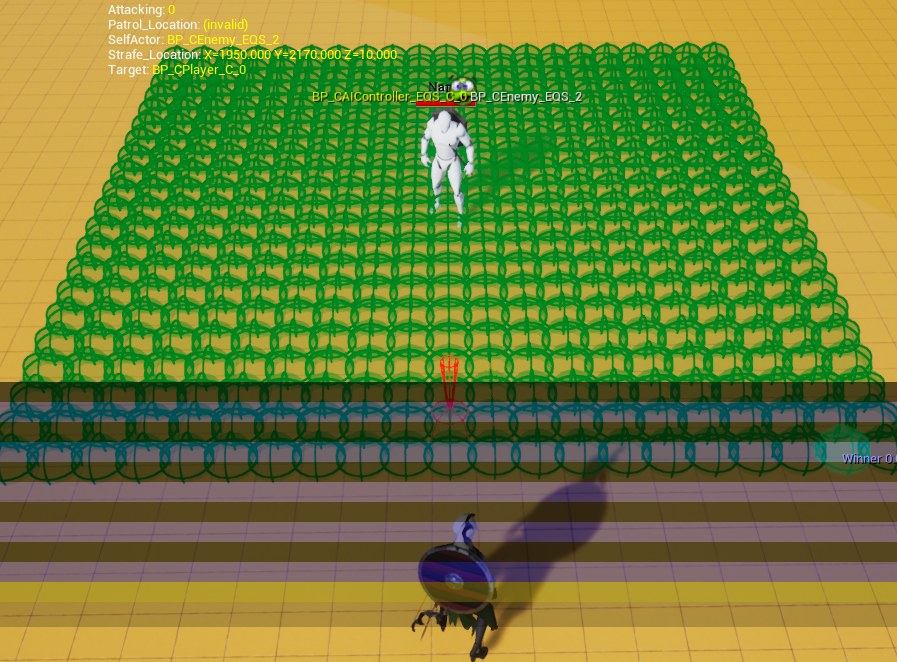 EQS가 잘 돌아가고 있는지 디버깅 하려면 실행 후 플레이어에 빙의한 뒤 ' (단따옴표) 키를 눌러 디버깅 모드로 들어가고