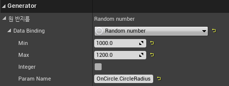 Random Num는 Min~Max의 범위 내에서 랜덤한 값을 주는 것을 의미한다