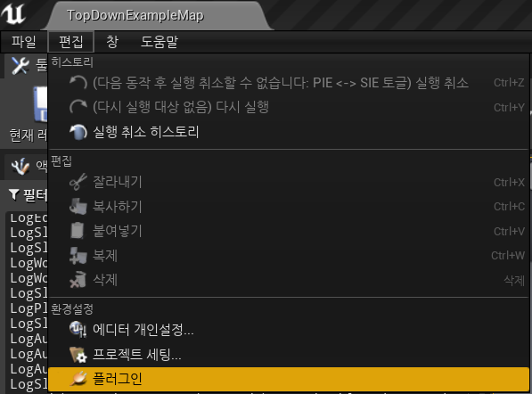 플러그인은 언리얼 상단 탭에 편집 -> 플러그인에서 볼 수 있다