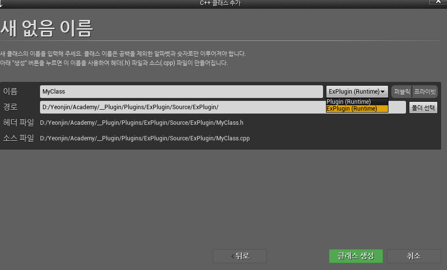 내가 만든 플러그인으로 선택하고 만들어주면 된다