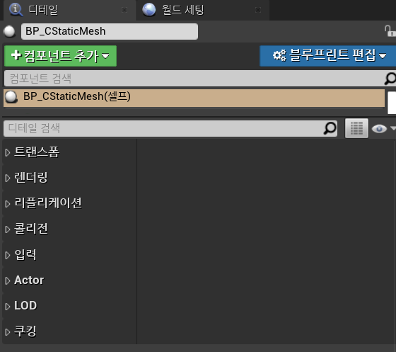 먼저 Static Mesh를 클릭했을 때 등장하는 디테일창에