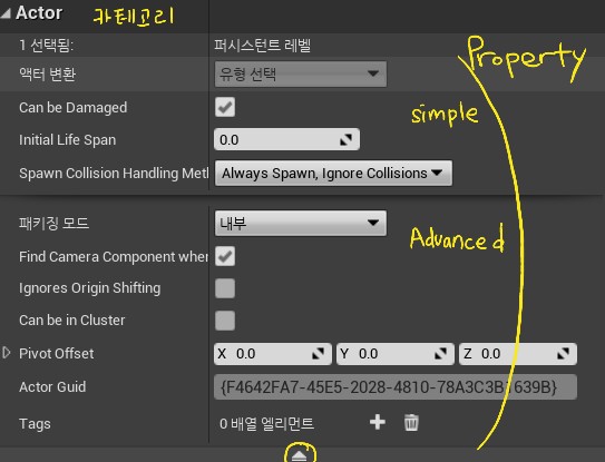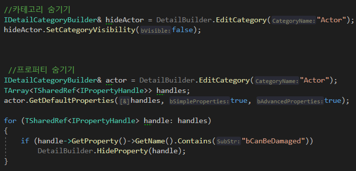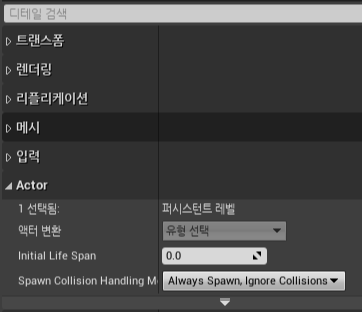 이를 통해 Actor 카테고리의 CanbeDamaged가 숨겨졌고