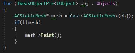 OnClicked_Paint()에 선택된 object가 ACStaticMesh로 캐스팅되는지 확인하고