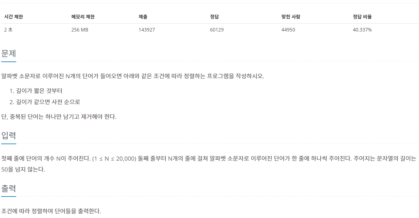 두번째에 word를 넣어주면 우선적으로 단어가 짧은 순, 단어의 길이가 같다면 두번째로 문자정렬을 해준다