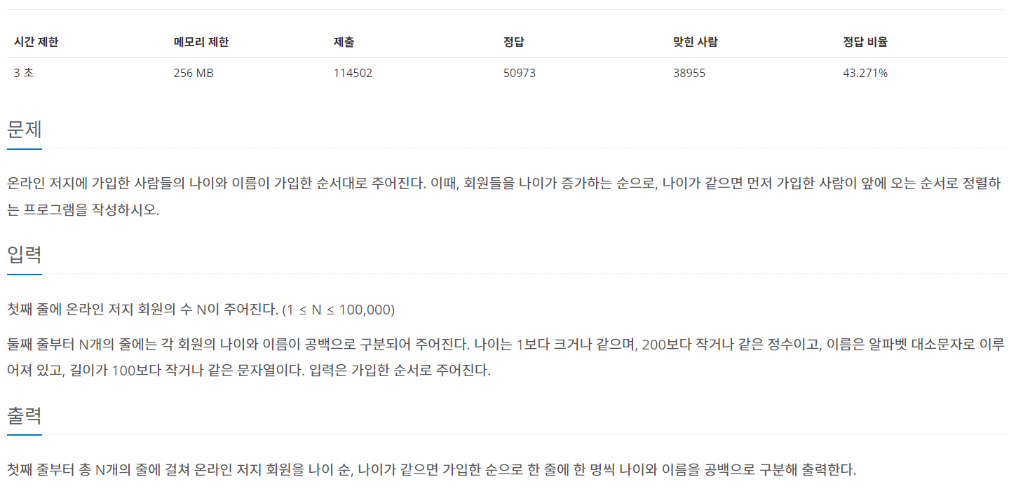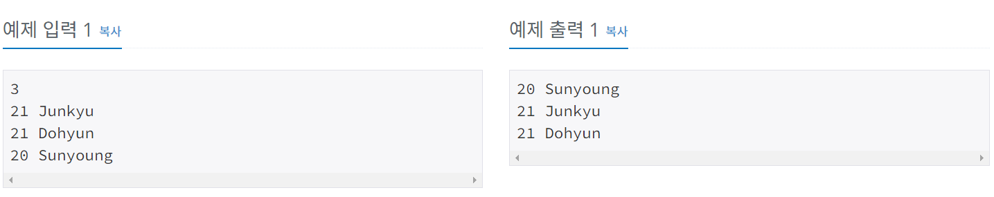 따라서 비교하는 값이 같은 경우에는 입력된 순서대로 출력한다