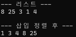 Insertion_sort(list); // 삽입 정렬 함수 호출